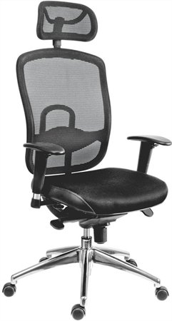 Főnöki szék, fejtámlával szövetborítás, hálós háttámla, "Oklahoma", fekete