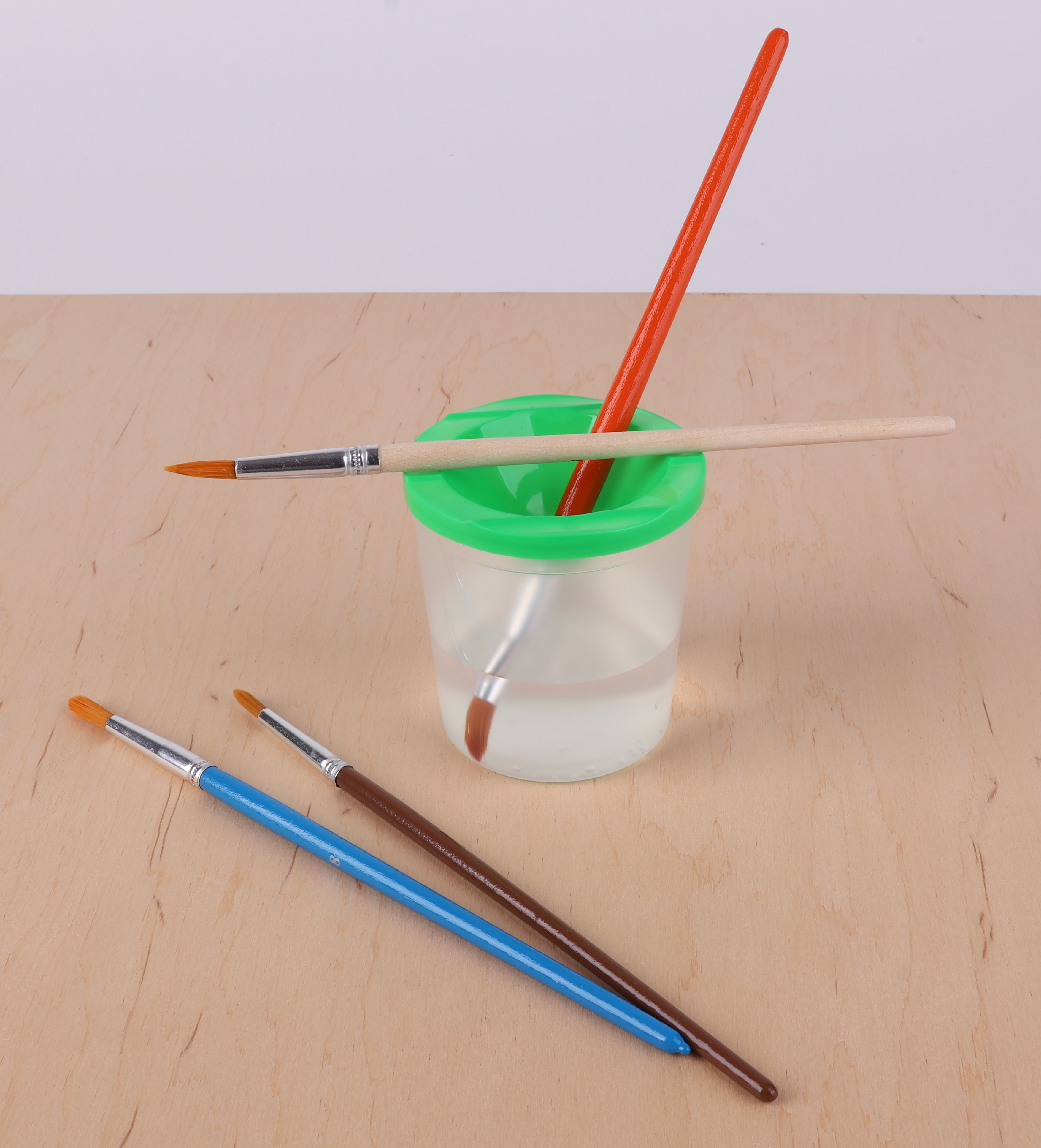 Az ecsettál műanyag fedele megakadályozza a víz kiömlését. Könnyen tisztítható, zöld és sárga színben kapható.