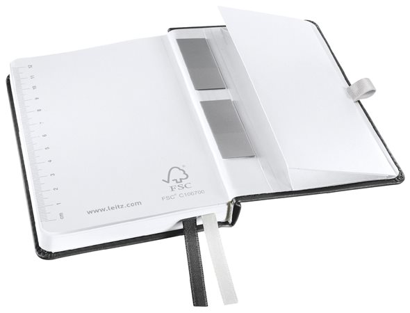 - belső zsebek az elülső és hátsó borító belső oldalán a különálló lapok, kisebb jegyzetek tárolásához