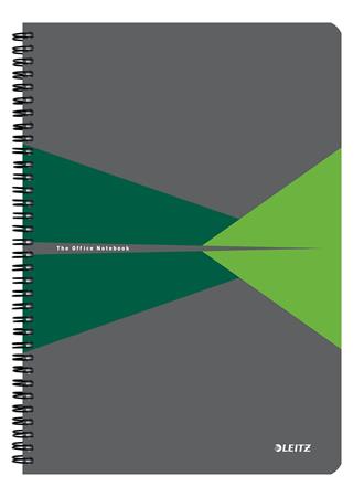 Spirálfüzet, A4, kockás, 90 lap, laminált karton borító, LEITZ "Office", szürke-zöld