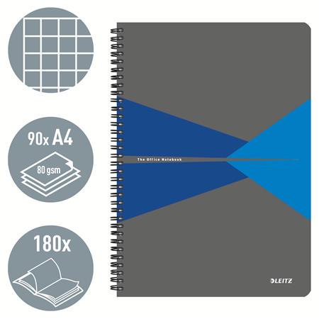 Spirálfüzet, A4, kockás, 90 lap, PP borító, LEITZ "Office", szürke-kék