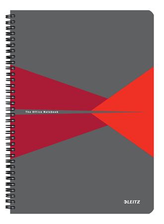 Spirálfüzet, A4, vonalas, 90 lap, laminált karton borító, LEITZ "Office", szürke-piros