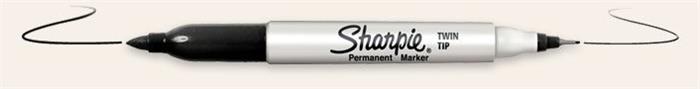 Alkoholos marker, kúpos, kétvégű, SHARPIE "Twin Tip", fekete