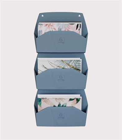 A csúcsminőségű dizájn találkozik a legmagasabb szintű ökológiai felelősségvállalással az újrahasznosított hulladékból készült fehér műanyaggal.-ergonomikus, falra szerelhető -alkalmas minden anyag, dokumentum, katalógus, szórólap vagy papír alapú információ tárolására vagy kiállítására-moduláris felépítésének köszönhetően a kívánt számú rekeszt könnyedén összepattinthatja-címketartó mellékelve-méret: 382x289x72 mm