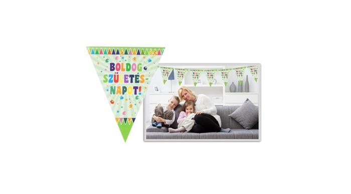 Szülinapi buli helyszínének dekorálásához ajánljuk ezt a vidám színes, Boldog Születésnapot girlandot.