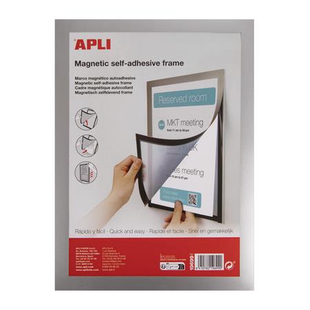 Mágneses öntapadó keret A4-es lapokhoz, amely lehetővé teszi fontos dokumentumok vagy képek gyors és egyszerű rögzítését.