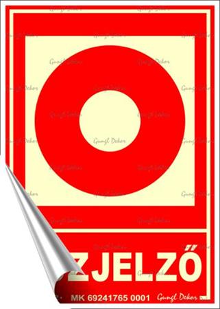 Információs matrica, 12,5x17,5 cm, fluoreszkáló, utánvilágítós, "Tűzjelző"